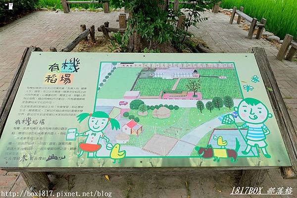 周围环绕四分地大小的有机实验田,採「鸭稻合作耕种」的有机种植方式,不仅可以让访客就近瞭解有机种植的方式,更是插秧、收割等农事体验活动的重要场地。
