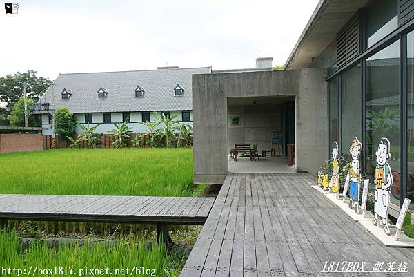 主建筑以「漂浮在稻浪上的教室」为设计理念,为一栋简洁朴实的清水模建筑,其内规劃有展示空间、多功能教室、玩米餐坊与及玩米小舖,提供民众多种接触有机种植及有机生活的方式。